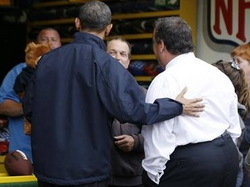 AP: During a football toss game along the Jersey Shore, New Jersey Gov. Chris Christie won a stuffed bear in one shot after several attempts by President Obama. (May 28)